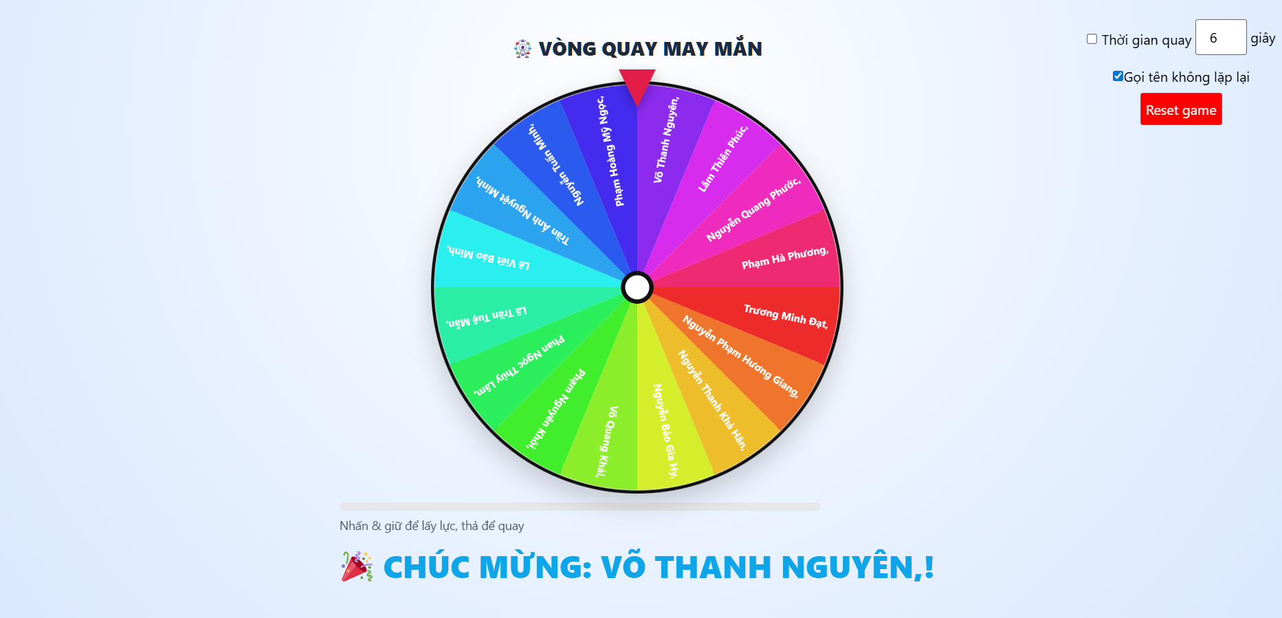 Trò chơi Vòng Quay May Mắn – Học sinh