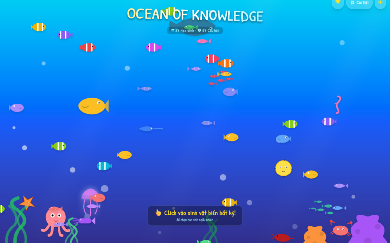 Vòng quay may mắn ngầm: Mỗi khi click vào một sinh vật biển, một điều bất ngờ sẽ xảy ra. Đó có thể là một câu hỏi thử thách kiến thức, hoặc sự hồi hộp tột độ khi tên của một thành viên “may mắn” trong lớp được xướng lên bảng.