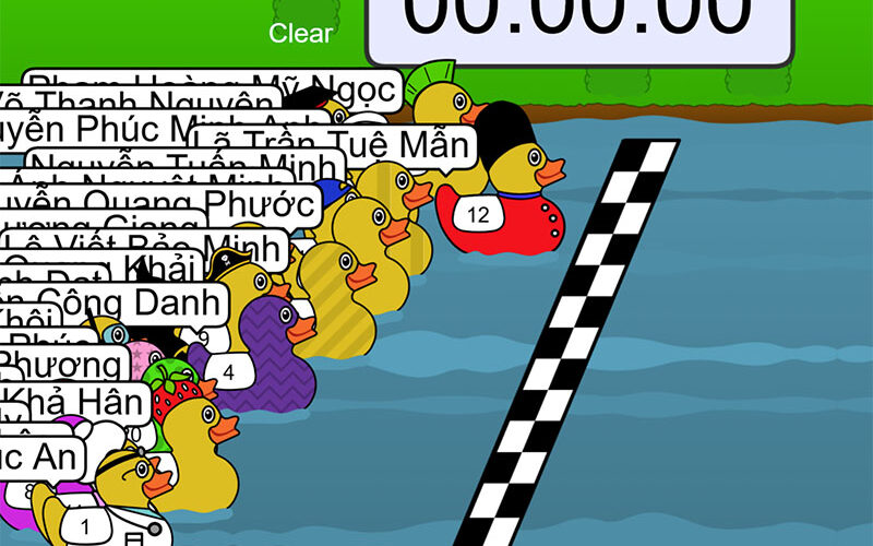 Đua Vịt là phiên bản trò chơi “gọi tên ngẫu nhiên” siêu dễ thương, được thiết kế đặc biệt để thu hút sự chú ý của học sinh Tiểu học và THCS. Thay vì những danh sách khô khan, hãy để những chú vịt ngộ nghĩnh giúp thầy cô chọn ra “người may mắn” trả lời câu hỏi!