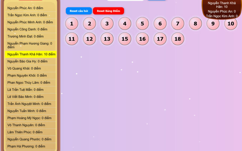 Giáo viên chủ động chọn học sinh (hoặc đội chơi) từ danh sách lớp có sẵn để bước vào lượt thi.