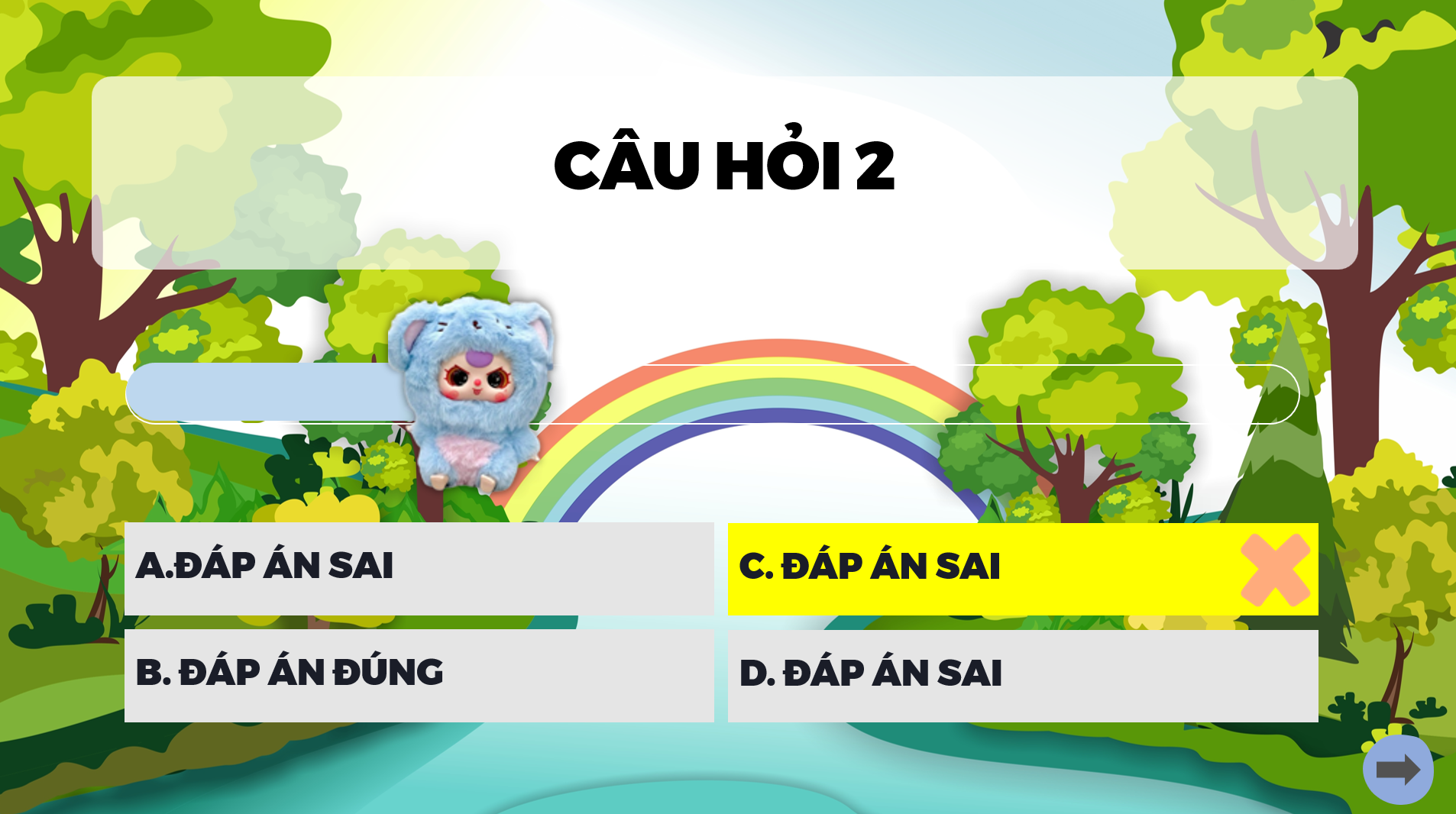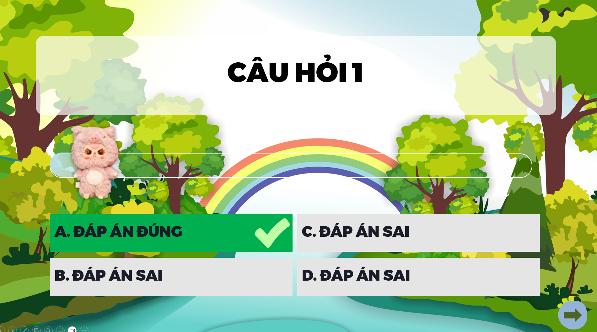 Bạn đang tìm một trò chơi PowerPoint vừa đẹp mắt, vừa dễ dùng, lại khiến học sinh hào hứng tham gia? Baby Three chính là lựa chọn khiến tiết học trở nên sinh động hơn hẳn. Với giao diện rừng xanh tươi sáng, nhân vật hoạt hình siêu đáng yêu, hiệu ứng chọn – mở – trả lời câu hỏi hấp dẫn, trò chơi tạo cảm giác như học sinh đang bước vào một thế giới khám phá đầy màu sắc ngay trong lớp học.