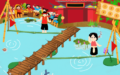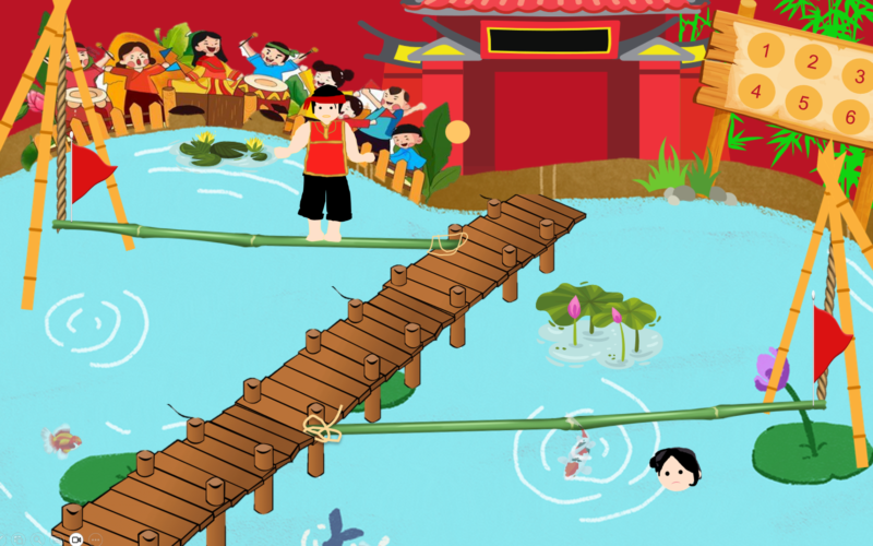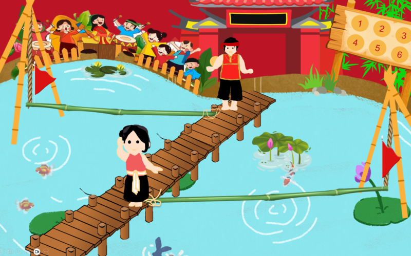Chia đội để chơi game. Mỗi đội sẽ trả lời câu hỏi trong thời gian quy định, đội nào trả lời đúng trước đội đó sẽ được bước 1 bước trên cầu, đội thua sẽ bị ngã xuống ao 3. Cứ tiếp tiếp trò chơi cho đến khi tìm ra được đội giật được cờ.